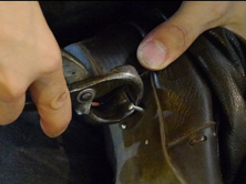 クリーニングで可能な限り落とすようシミ抜きを行いますが、革質や色味などにより完全に落としきれない場合もあります。そのような場合は、染めなどでシミを目立たなくする方法をご提案させていただきます。