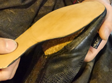 市販のインソールは、購入したものをそのまま靴に入れるか、ご自身でカットしてから使います。スピカではオリジナルのインソールから型紙をおこし、それを元にオリジナルと同じサイズのインソールを作りますので、靴にぴったりのものができます。別途料金はかかりますが、インソールの下にスポンジも入れれば、履き心地も改善できます。