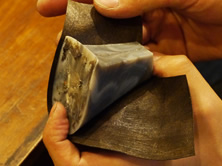 おろす前に磨くことで、さらにツヤを出したり、革を馴染みやすくしたりすることができます。