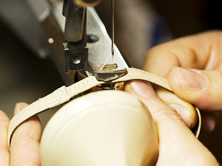 一度剥がれてしまった接着部分は、再度接着しても強度はどうしても弱くなってしまいます。接着した後に、縫いをかけると、強度が格段に高まり剥がれにくくなります。