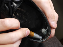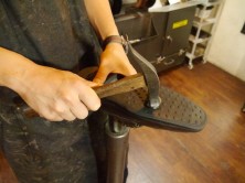 - 市販のインソールは、購入したものをそのまま靴に入れるか、ご自身でカットしてから使います。スピカではオリジナルのインソールから型紙をおこし、それを元にオリジナルと同じサイズのインソールを作りますので、靴にぴったりのものができます。別途料金はかかりますが、インソールの下にスポンジも入れれば、履き心地も改善できます。