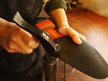おろす前に磨くことで、さらにツヤを出したり、革を馴染みやすくしたりすることができます。