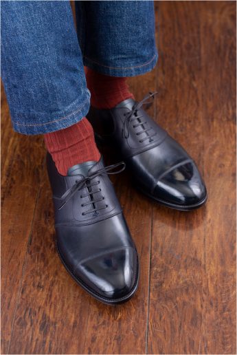 ストレートチップオックスフォードオックスフォードシューズとは、鳩目を通して紐で結ぶ短靴のことを指します。