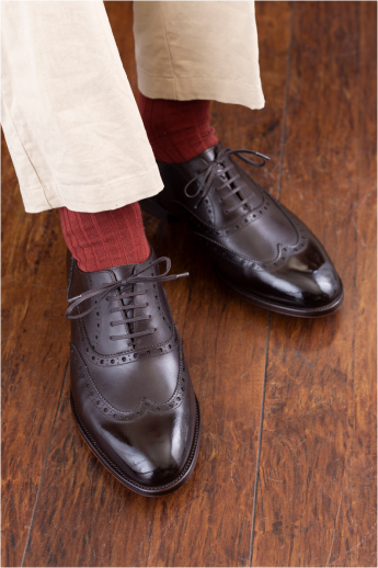 クォーターブローグは比較的穴飾りが少なく、ビジネスシーンでも使用しやすいデザインになっています。 -