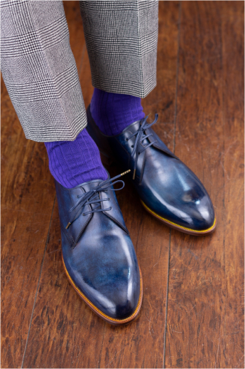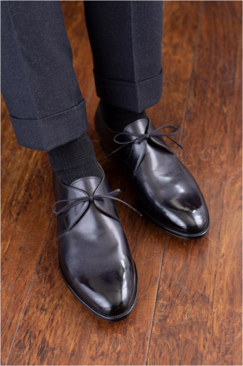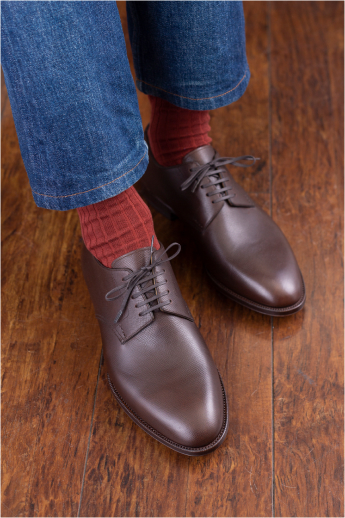 ワンアイレットダービーワンアイレットのダービーは、シンプルなデザインであるがため、選ばれる革や使用する木型のフォルムで大きく印象が変わります。