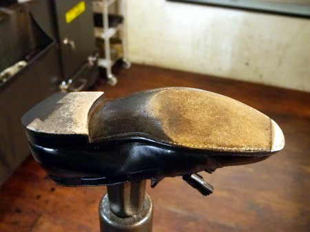 削れ過ぎてしまったヒールブロックを外し、新たに革を積み上げて作製して交換した修理事例です。